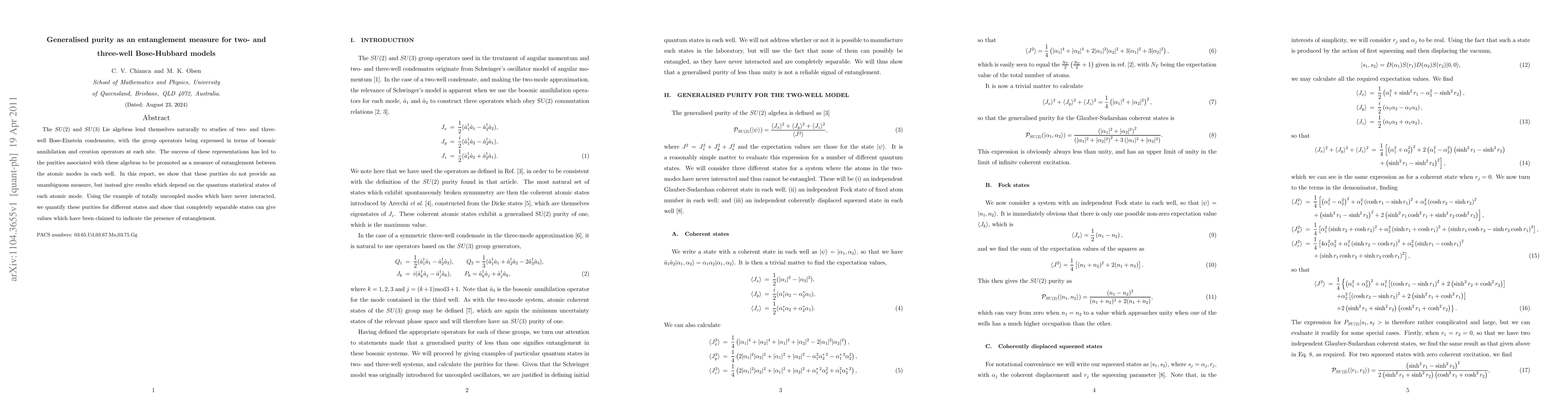 The SU(2) and SU(3) Lie algebras lend themselves naturally to studies of two- and three-well Bose-Einstein condensates, with the group operators being expressed in terms of bosonic annihilation and creation operators at each site. The success of these representations has led to the purities associated with these algebras to be promoted as a measure of entanglement between the atomic modes in each well. In this report, we show that these purities do not provide an unambiguous measure, but instead give results which depend on the quantum statistical states of each atomic mode. Using the example of totally uncoupled modes which have never interacted, we quantify these purities for different states and show that completely separable states can give values which have been claimed to indicate the presence of entanglement.