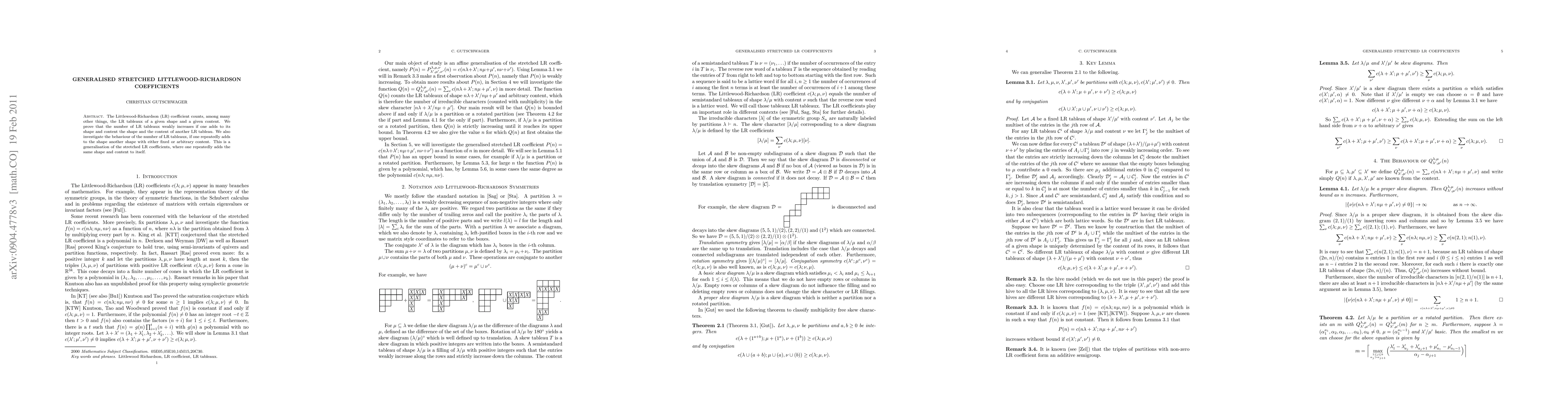 This paper generalises stretched Littlewood-Richardson coefficients by proving that adding the shape and content of another Littlewood-Richardson tableau to a given one weakly increases the number of LR tableaux, and explores the implications of repeatedly adding different shapes and contents.