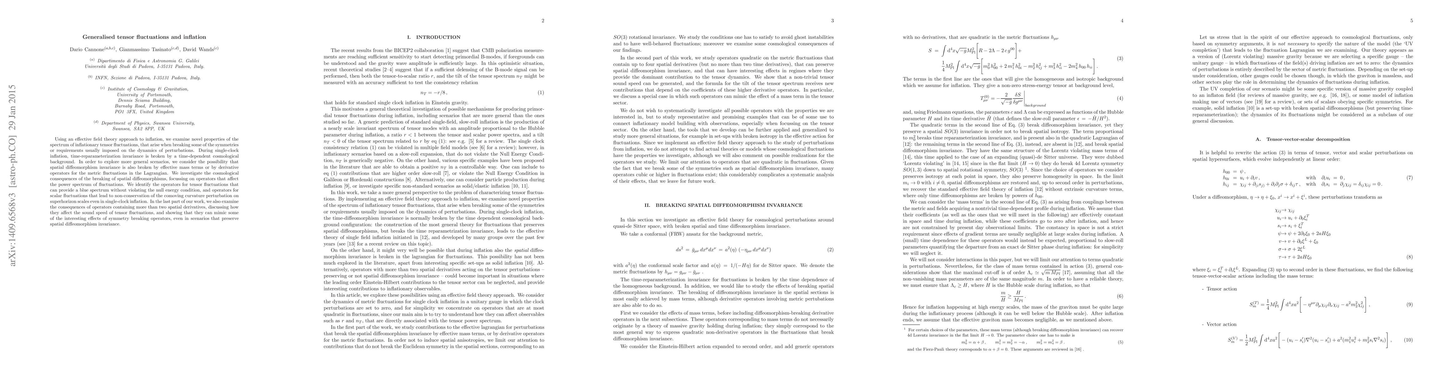 Using an effective field theory approach to inflation, we examine novel properties of the spectrum of inflationary tensor fluctuations, that arise when breaking some of the symmetries or requirements usually imposed on the dynamics of perturbations. During single-clock inflation, time-reparameterization invariance is broken by a time-dependent cosmological background. In order to explore more general scenarios, we consider the possibility that spatial diffeomorphism invariance is also broken by effective mass terms or by derivative operators for the metric fluctuations in the Lagrangian. We investigate the cosmological consequences of the breaking of spatial diffeomorphisms, focussing on operators that affect the power spectrum of fluctuations. We identify the operators for tensor fluctuations that can provide a blue spectrum without violating the null energy condition, and operators for scalar fluctuations that lead to non-conservation of the comoving curvature perturbation on superhorizon scales even in single-clock inflation. In the last part of our work, we also examine the consequences of operators containing more than two spatial derivatives, discussing how they affect the sound speed of tensor fluctuations, and showing that they can mimic some of the interesting effects of symmetry breaking operators, even in scenarios that preserve spatial diffeomorphism invariance.