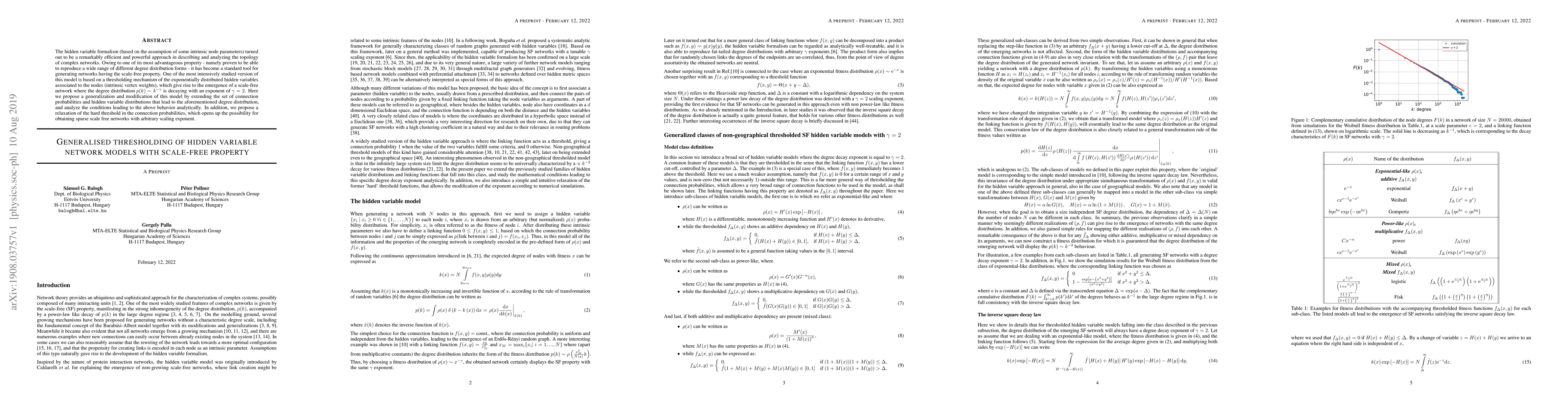 This paper generalizes a hidden variable network model to generate scale-free networks with arbitrary scaling exponents by modifying connection probabilities and hidden variable distributions. It also relaxes the hard threshold to produce sparse networks with tunable degree distributions.