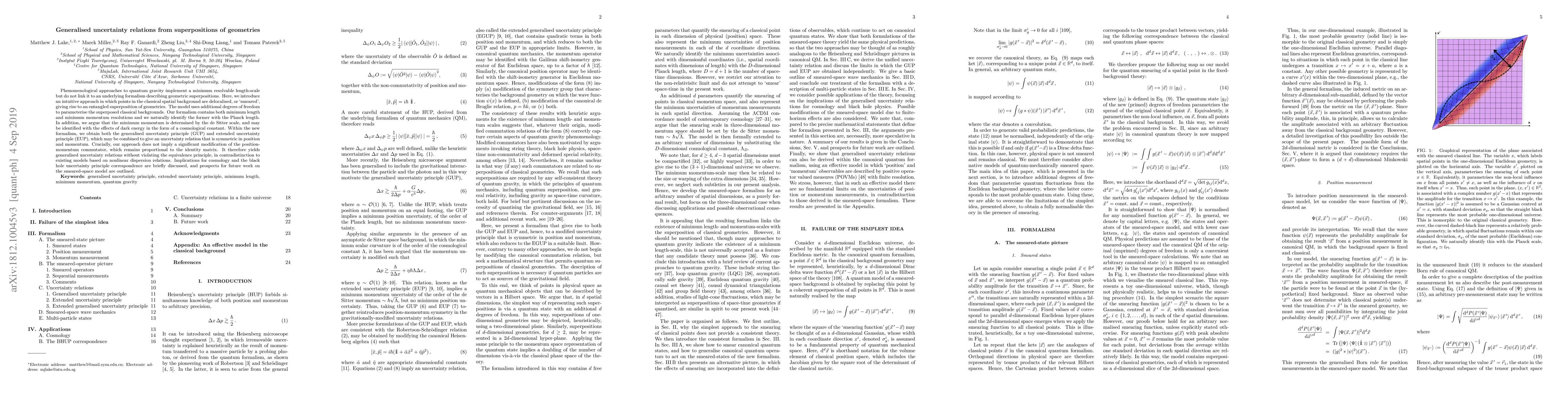 Phenomenological approaches to quantum gravity implement a minimum resolvable length-scale but do not link it to an underlying formalism describing geometric superpositions. Here, we introduce an intuitive approach in which points in the classical spatial background are delocalised, or `smeared', giving rise to an entangled superposition of geometries. The model uses additional degrees of freedom to parameterise the superposed classical backgrounds. Our formalism contains both minimum length and minimum momentum resolutions and we naturally identify the former with the Planck length. In addition, we argue that the minimum momentum is determined by the de Sitter scale, and may be identified with the effects of dark energy in the form of a cosmological constant. Within the new formalism, we obtain both the generalised uncertainty principle (GUP) and extended uncertainty principle (EUP), which may be combined to give an uncertainty relation that is symmetric in position and momentum. Crucially, our approach does not imply a significant modification of the position-momentum commutator, which remains proportional to the identity matrix. It therefore yields generalised uncertainty relations without violating the equivalence principle, in contradistinction to existing models based on nonlinear dispersion relations. Implications for cosmology and the black hole uncertainty principle correspondence are briefly discussed, and prospects for future work on the smeared-space model are outlined.