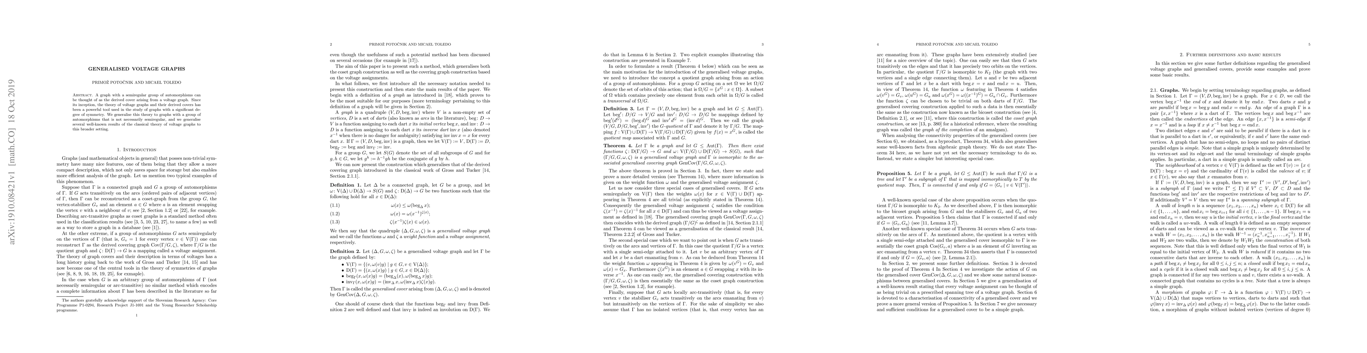 This paper generalises the theory of voltage graphs to accommodate graphs with a group of automorphisms that is not necessarily semiregular, extending several classical results to this broader context. The study aims to enhance the understanding of graphs with significant symmetry beyond the semiregular automorphism framework.