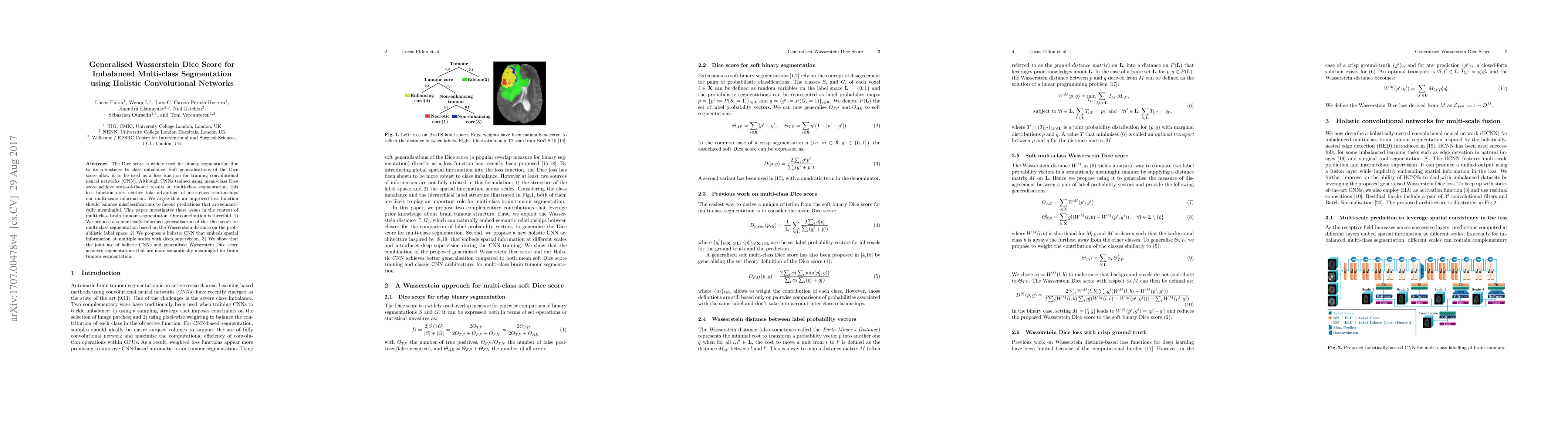 This paper proposes a generalised Wasserstein Dice score for multi-class segmentation, integrating it with a holistic CNN that leverages multi-scale spatial information. The combined approach results in more semantically meaningful segmentations for brain tumour classification.