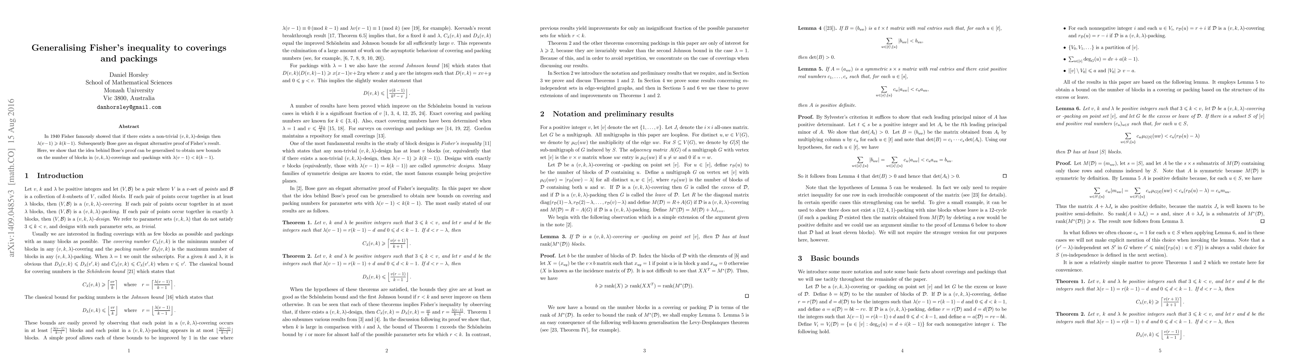 In 1940 Fisher famously showed that if there exists a non-trivial