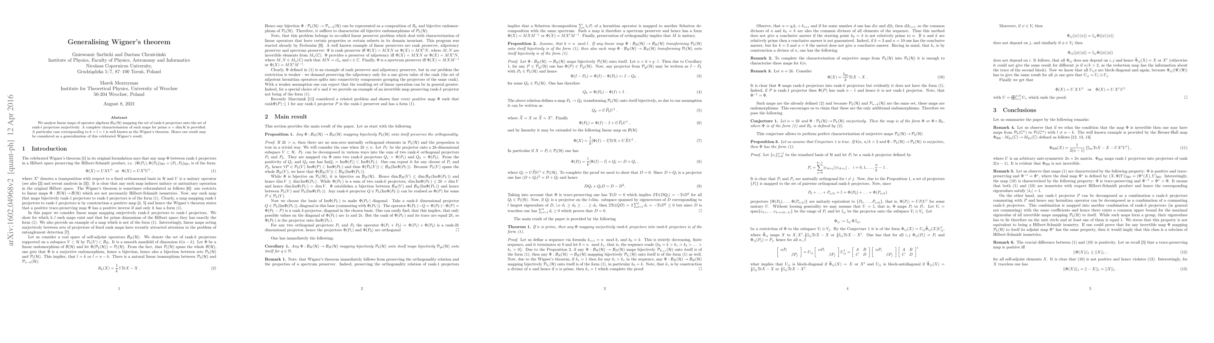 This paper provides a complete characterisation of linear maps that surjectively map rank-$k$ projectors to rank-$l$ projectors in operator algebras, extending Wigner's theorem to dimensions where the Hilbert space dimension is prime. The results generalise the known solution for $k=l=1$.