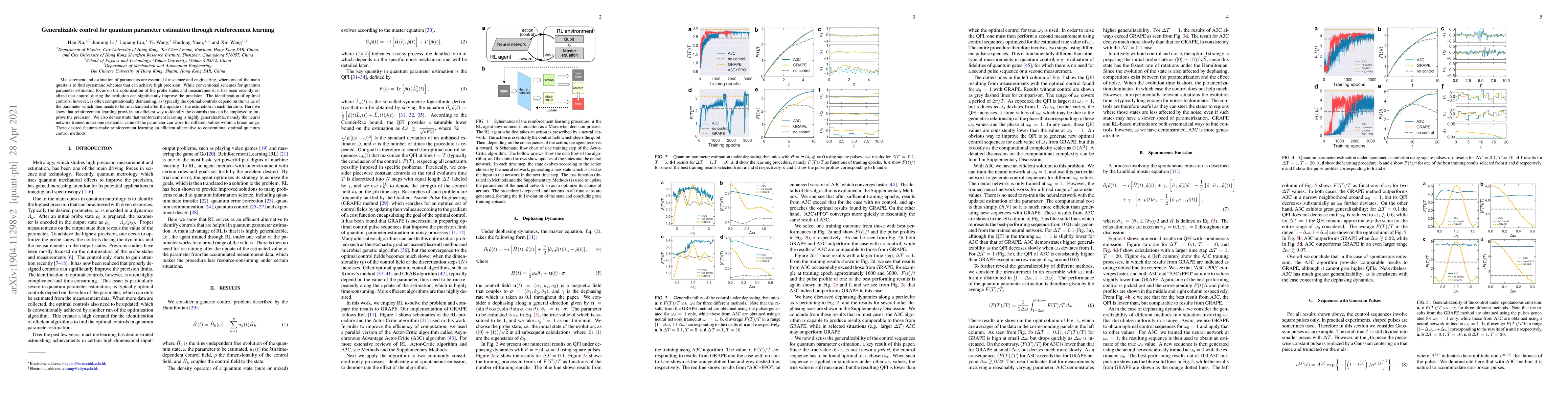 This paper demonstrates that reinforcement learning can efficiently identify optimal controls for quantum parameter estimation, improving precision without the computational burden of recalculating controls in each iteration. The method is shown to be highly generalizable, allowing trained neural networks to work effectively across a broad range of parameter values.