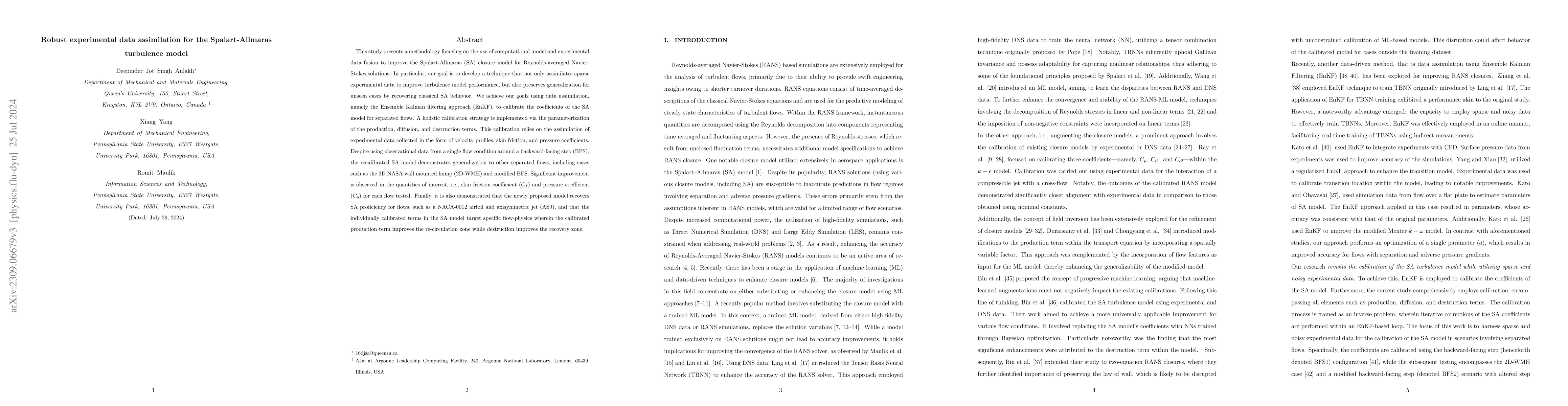 This study enhances the Spalart-Allmaras model for separated flow simulations using Ensemble Kalman Filtering to assimilate experimental data, achieving significant improvements in skin friction and pressure coefficients. The recalibrated model generalizes well to different separated flows while maintaining proficiency for unseparated flows.