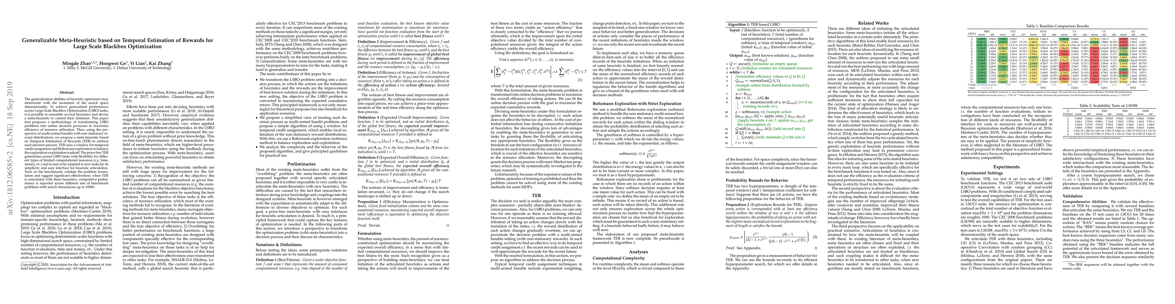 A new meta-heuristic called Temporal Estimation of Rewards (TER) is proposed to improve performance in Large Scale Blackbox Optimization tasks by balancing exploration and exploitation, and generalizing across different search dimensions and computational resources.