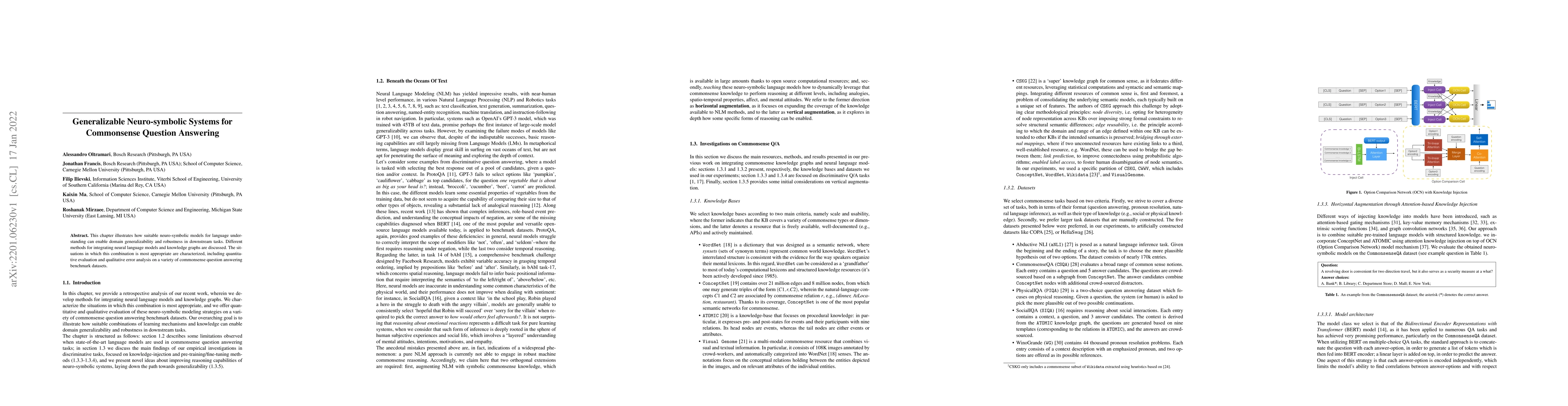 This chapter illustrates how suitable neuro-symbolic models for language understanding can enable domain generalizability and robustness in downstream tasks. Different methods for integrating neural language models and knowledge graphs are discussed. The situations in which this combination is most appropriate are characterized, including quantitative evaluation and qualitative error analysis on a variety of commonsense question answering benchmark datasets.