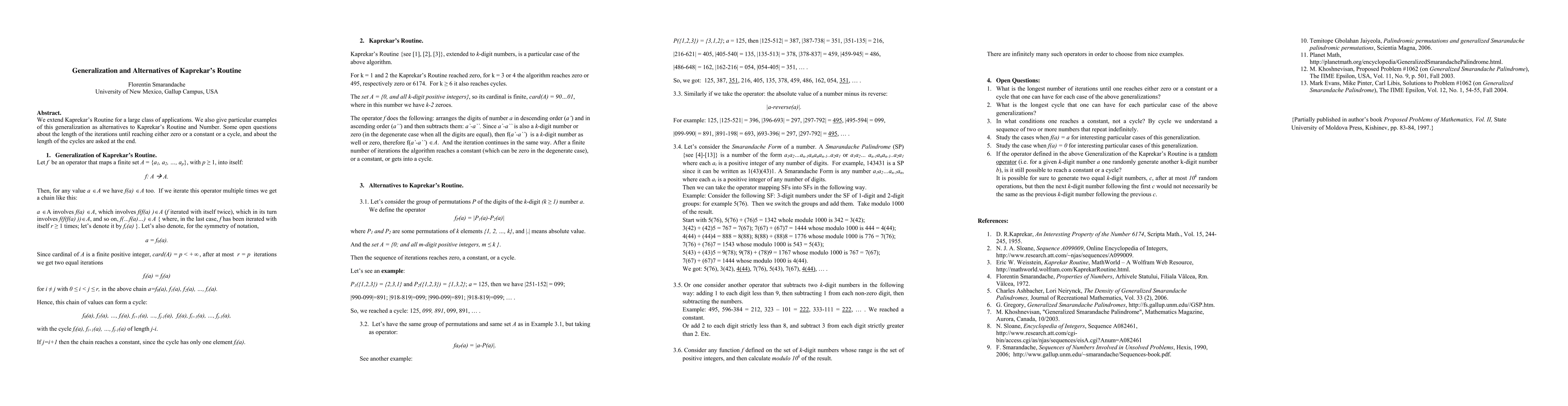 This paper generalizes Kaprekar's Routine for broader applications and provides specific examples as alternatives. It raises open questions regarding the iteration lengths to zero, constants, or cycles.