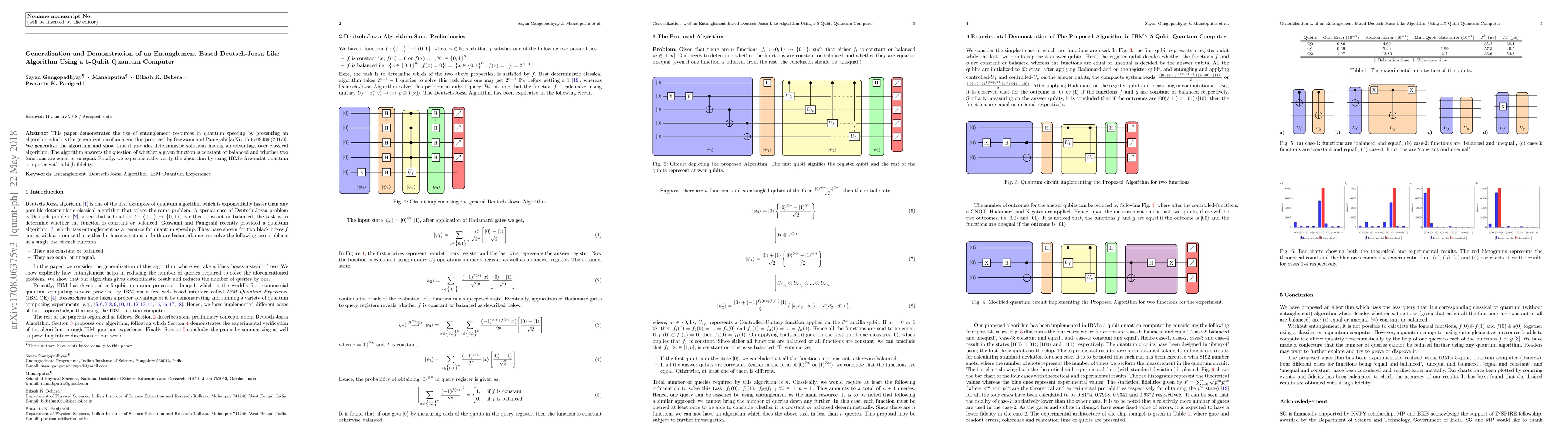 This paper demonstrates a quantum algorithm that answers questions about functions using entanglement resources, providing deterministic solutions with an advantage over classical algorithms. It is experimentally verified on IBM's 5-qubit quantum computer.