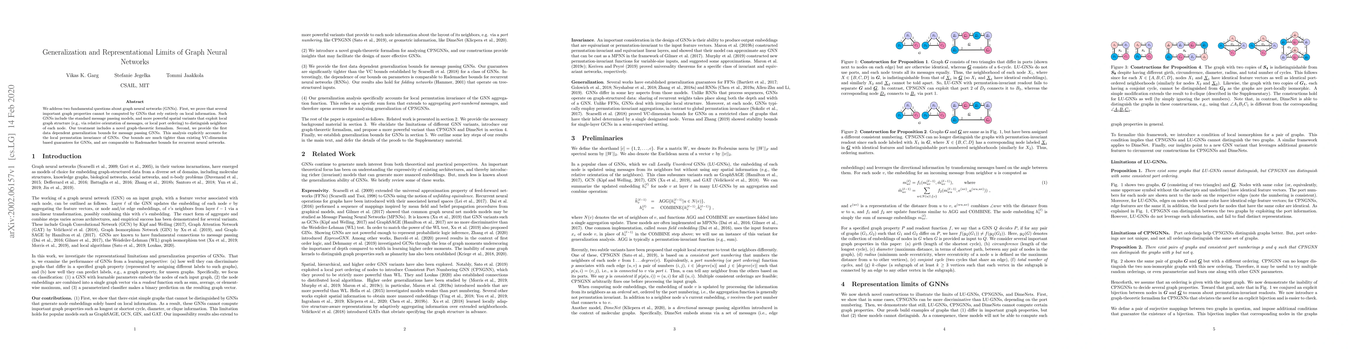 This paper demonstrates that graph neural networks (GNNs) relying solely on local information cannot compute certain important graph properties. It also presents tighter data-dependent generalization bounds for message passing GNNs, accounting for their local permutation invariance, outperforming existing VC-dimension based guarantees.