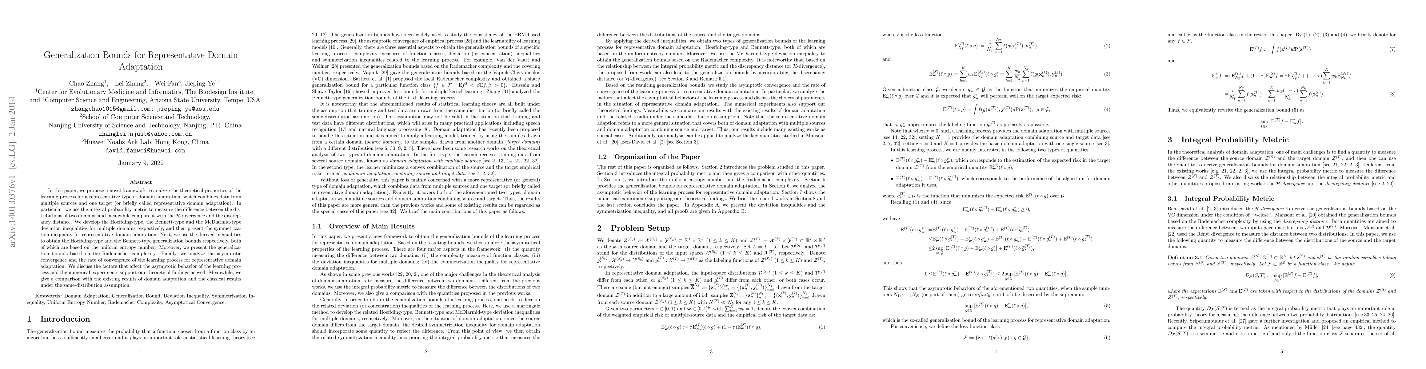 The paper proposes a novel framework for analyzing the theoretical properties of learning processes in representative domain adaptation, which combines data from multiple sources and one target domain. It uses integral probability metrics to measure distribution differences, develops deviation inequalities for multiple domains, and presents a symmetrization inequality for representative domain adaptation.