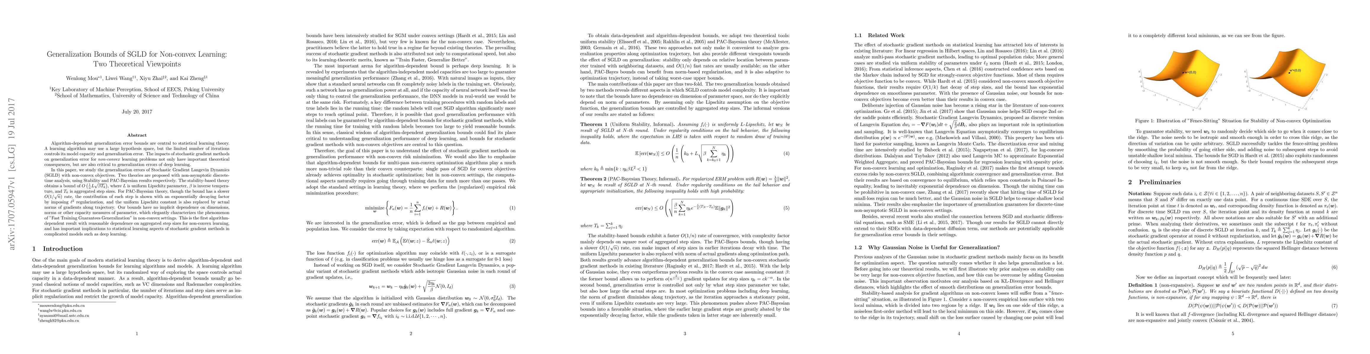 This paper investigates the generalization error of Stochastic Gradient Langevin Dynamics (SGLD) for non-convex learning problems, proposing two theoretical viewpoints. The stability-based theory provides a bound dependent on the inverse temperature and aggregated step sizes, while the PAC-Bayesian theory offers a slower rate bound with an exponentially decaying factor from regularization. Both bounds highlight the phenomenon of "Fast Training Guarantees Generalization" without implicit dependence on model dimensions or capacity measures.