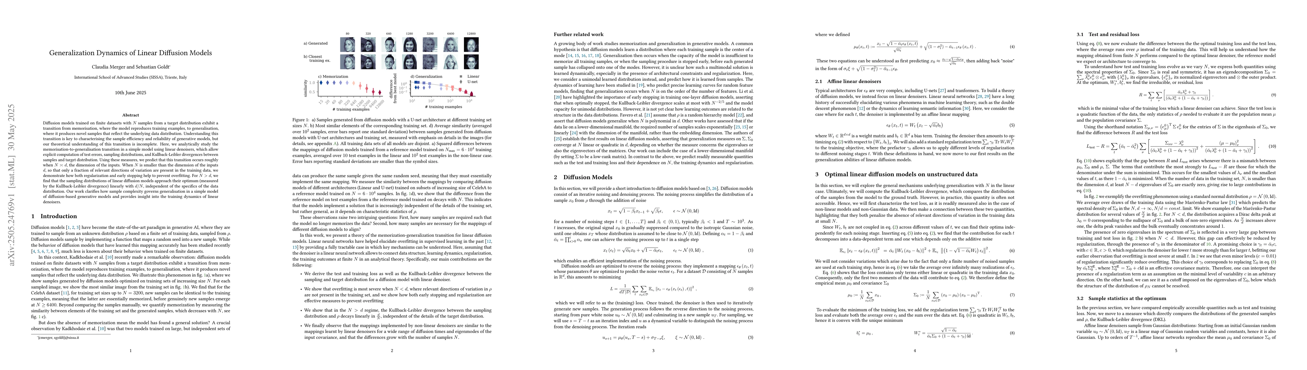 The paper presents an analytical framework for understanding the memorization-to-generalization transition in linear diffusion models, offering explicit computations of test errors, sampling distributions, and Kullback-Leibler divergences.