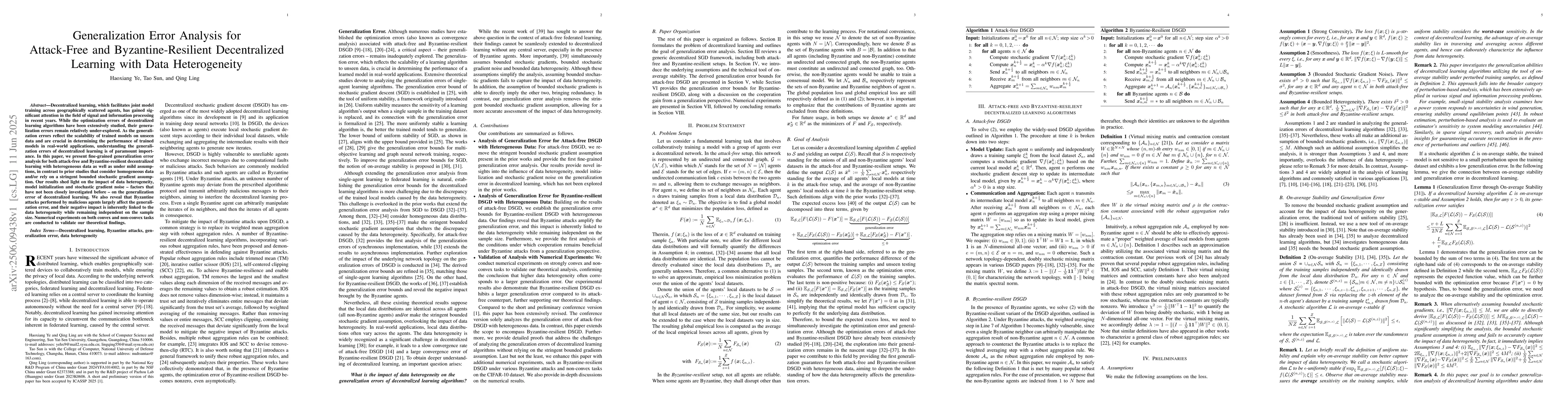 Researchers analyzed generalization errors in decentralized learning with heterogeneous data, finding that Byzantine attacks significantly impact performance and that data heterogeneity exacerbates these effects.