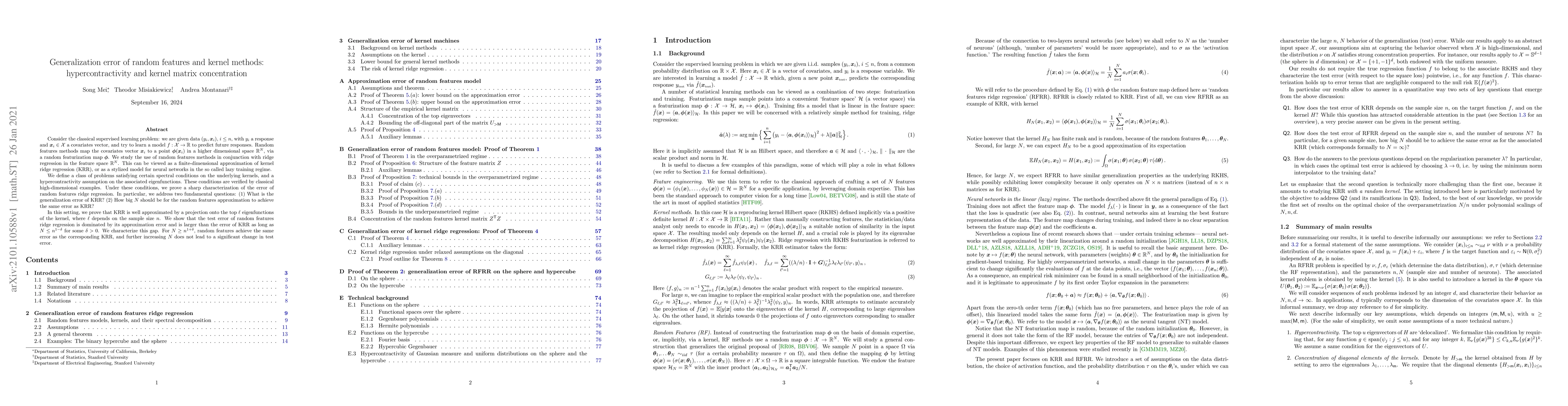 This paper investigates the generalization error of random features methods in supervised learning, comparing them to kernel ridge regression (KRR). It demonstrates that for sufficiently large dimensions $N$, random features can approximate KRR's error, but for $N \le n^{1-\delta}$, the error gap persists due to approximation error.