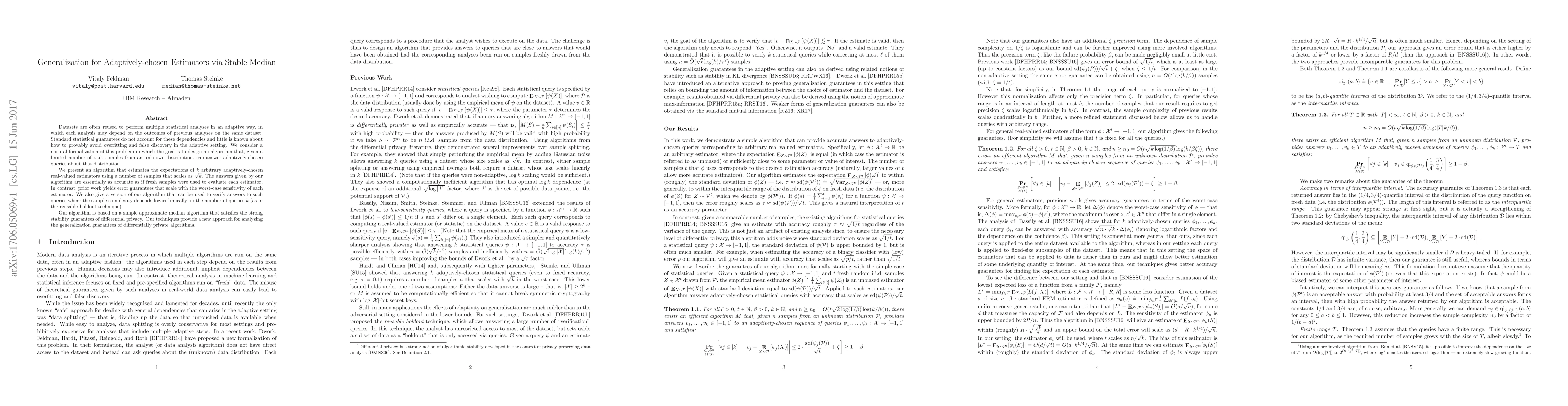 This research introduces an algorithm that answers adaptively-chosen statistical queries with sample complexity scaling as u221a k, ensuring accurate estimates as if fresh samples were used for each query. It contrasts with prior methods relying on worst-case estimator sensitivity. The algorithm's foundation is a differentially private approximate median method, providing new insights into generalization guarantees for differentially private algorithms.