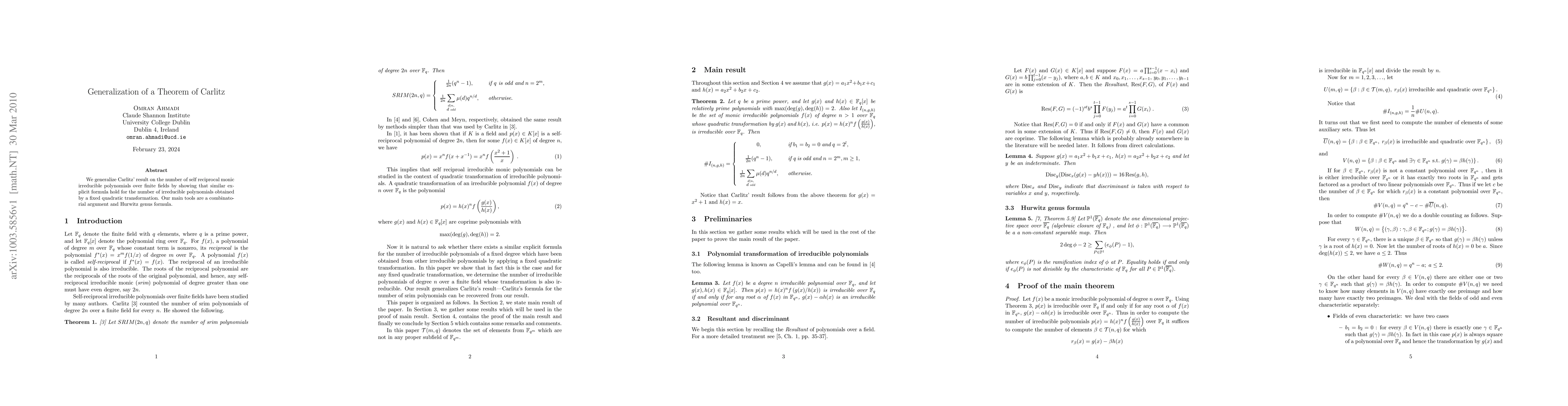 Researchers generalize a theorem on irreducible polynomials over finite fields using a combinatorial argument and the Hurwitz genus formula, providing explicit formulas for the number of irreducible polynomials under specific transformations.