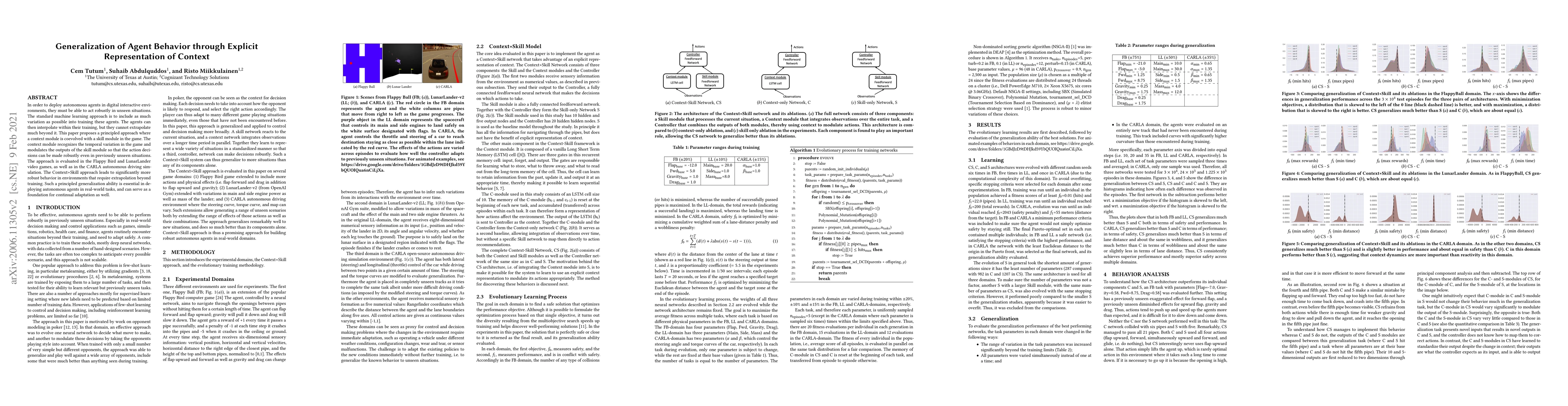 In order to deploy autonomous agents in digital interactive environments, they must be able to act robustly in unseen situations. The standard machine learning approach is to include as much variation as possible into training these agents. The agents can then interpolate within their training, but they cannot extrapolate much beyond it. This paper proposes a principled approach where a context module is coevolved with a skill module in the game. The context module recognizes the temporal variation in the game and modulates the outputs of the skill module so that the action decisions can be made robustly even in previously unseen situations. The approach is evaluated in the Flappy Bird and LunarLander video games, as well as in the CARLA autonomous driving simulation. The Context+Skill approach leads to significantly more robust behavior in environments that require extrapolation beyond training. Such a principled generalization ability is essential in deploying autonomous agents in real-world tasks, and can serve as a foundation for continual adaptation as well.