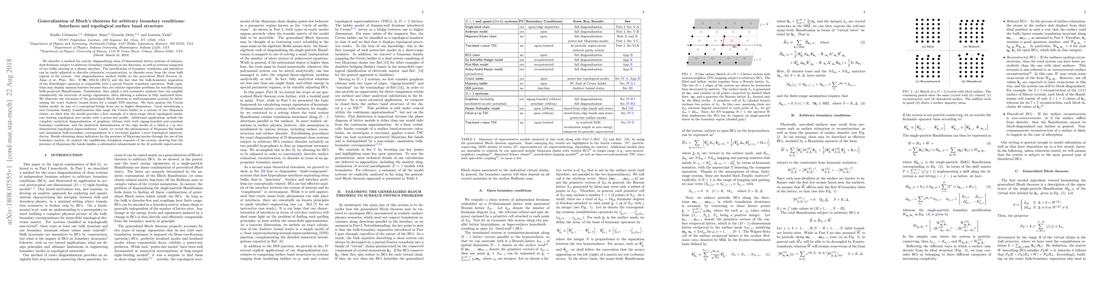 We describe a method for exactly diagonalizing clean $D$-dimensional lattice systems of independent fermions subject to arbitrary boundary conditions in one direction, as well as systems composed of two bulks meeting at a planar interface. Our method builds on the generalized Bloch theorem [A. Alase et al., Phys. Rev. B 96, 195133 (2017)] and the fact that the bulk-boundary separation of the Schrodinger equation is compatible with a partial Fourier transform operation. Bulk equations may display unusual features because they are relative eigenvalue problems for non-Hermitian, bulk-projected Hamiltonians. Nonetheless, they admit a rich symmetry analysis that can simplify considerably the structure of energy eigenstates, often allowing a solution in fully analytical form. We illustrate our extension of the generalized Bloch theorem to multicomponent systems by determining the exact Andreev bound states for a simple SNS junction. We then analyze the Creutz ladder model, by way of a conceptual bridge from one to higher dimensions. Upon introducing a new Gaussian duality transformation that maps the Creutz ladder to a system of two Majorana chains, we show how the model provides a first example of a short-range chiral topological insulator hosting topological zero modes with a power-law profile. Additional applications include the complete analytical diagonalization of graphene ribbons with both zigzag-bearded and armchair boundary conditions, and the analytical determination of the edge modes in a chiral $p+ip$ two-dimensional topological superconductor. Lastly, we revisit the phenomenon of Majorana flat bands and anomalous bulk-boundary correspondence in a two-band gapless $s$-wave topological superconductor. We analyze the equilibrium Josephson response of the system, showing how the presence of Majorana flat bands implies a substantial enhancement in the $4\pi$-periodic supercurrent.