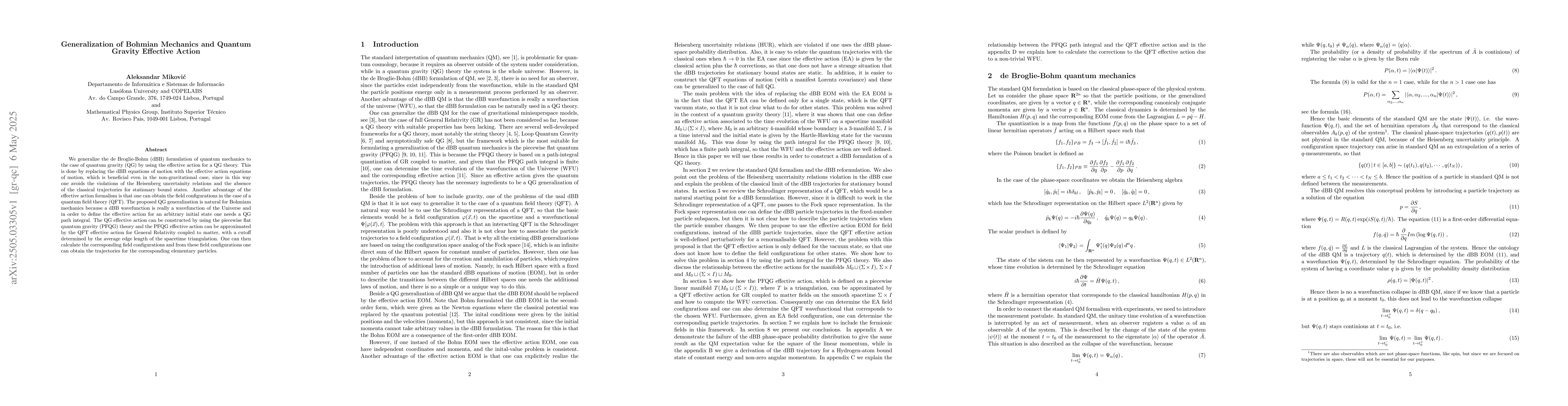 Researchers generalized de Broglie-Bohm quantum mechanics to include quantum gravity by using an effective action framework, which allows for the calculation of field configurations and trajectories for elementary particles without violating uncertainty relations.