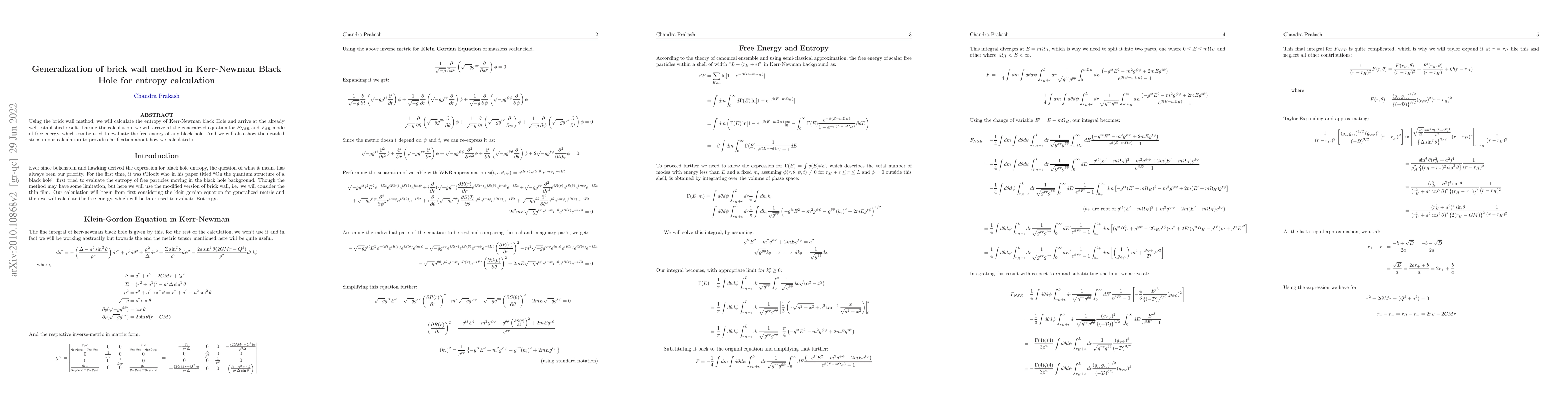 This paper generalizes the brick wall method to calculate the entropy of Kerr-Newman black holes, arriving at the established result. It also derives generalized equations for free energy in FNSR and FSR modes applicable to any black hole, providing detailed calculation steps for clarity.