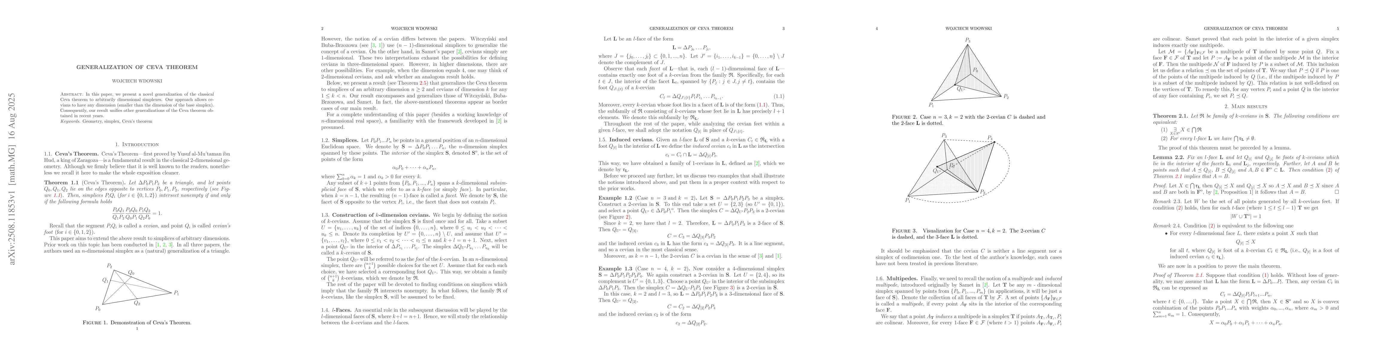 In this paper, we present a novel generalization of the classical Ceva theorem to arbitrarily dimensional simplexes. Our approach allows cevians to have any dimension (smaller than the dimension of the base simplex). Consequently, our result unifies other generalizations of the Ceva theorem obtained in recent years.
