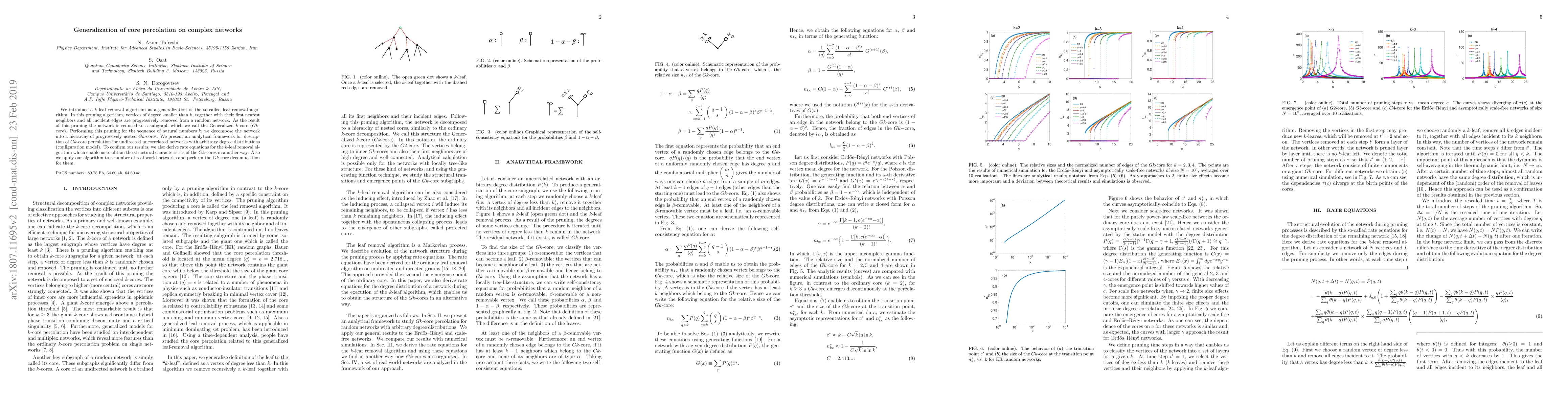 This paper generalizes the leaf removal algorithm to a $k$-leaf removal algorithm, creating Generalized $k$-cores ($Gk$-cores) by progressively removing vertices of degree less than $k$ and their connections. The authors develop an analytical framework to describe the $Gk$-core percolation and apply it to both synthetic and real-world networks.