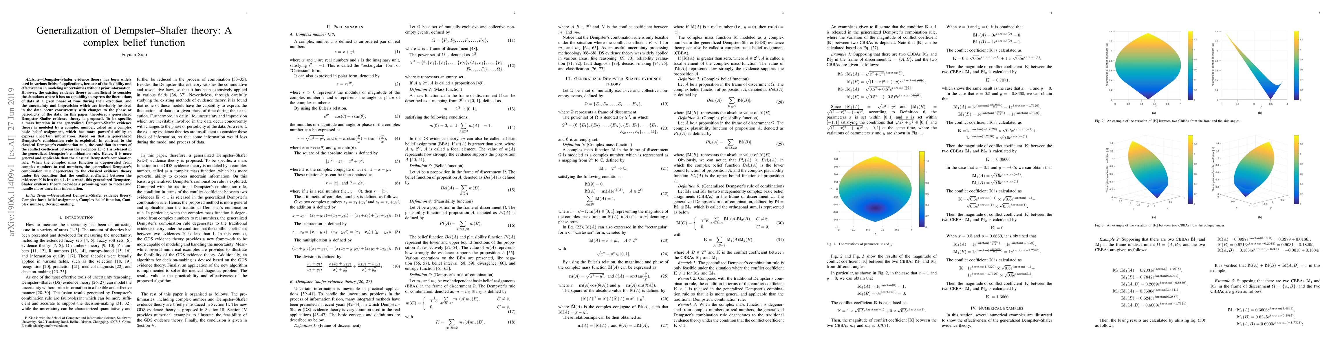 This paper proposes a generalized version of Dempster-Shafer evidence theory using complex basic belief assignments to better model uncertainties and fluctuations in data. The new combination rule relaxes the conflict coefficient condition, offering a more flexible approach to handling concurrent uncertainty and imprecision.