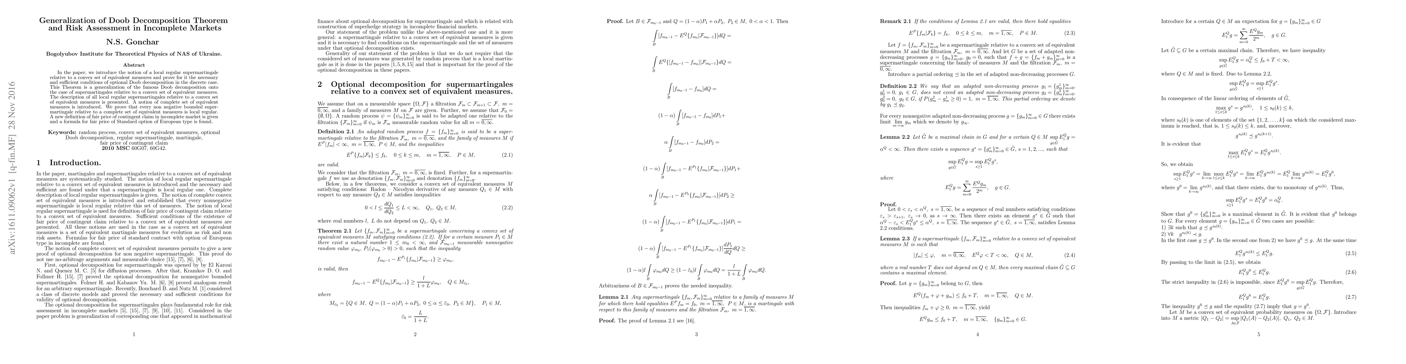 Researchers generalize the Doob Decomposition Theorem to incomplete markets, allowing for fair pricing of contingent claims in scenarios where multiple equivalent measures exist.