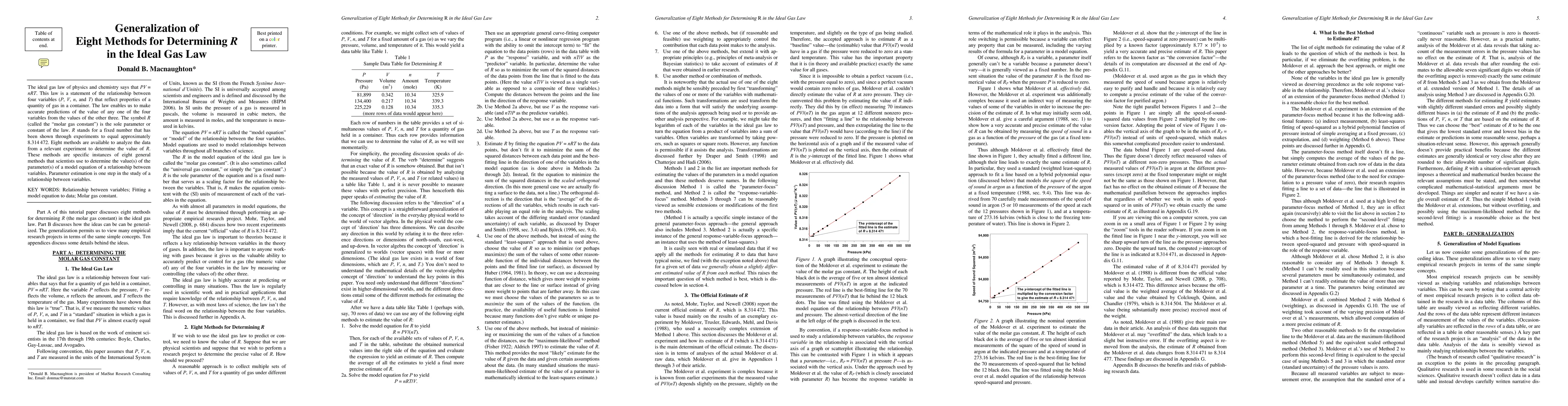 This paper explores eight methods for determining the molar gas constant R in the ideal gas law, PV = nRT, and generalizes these methods to broader parameter estimation in scientific models. The study emphasizes the importance of R in accurately predicting gas properties and highlights the experimental validation of its value.