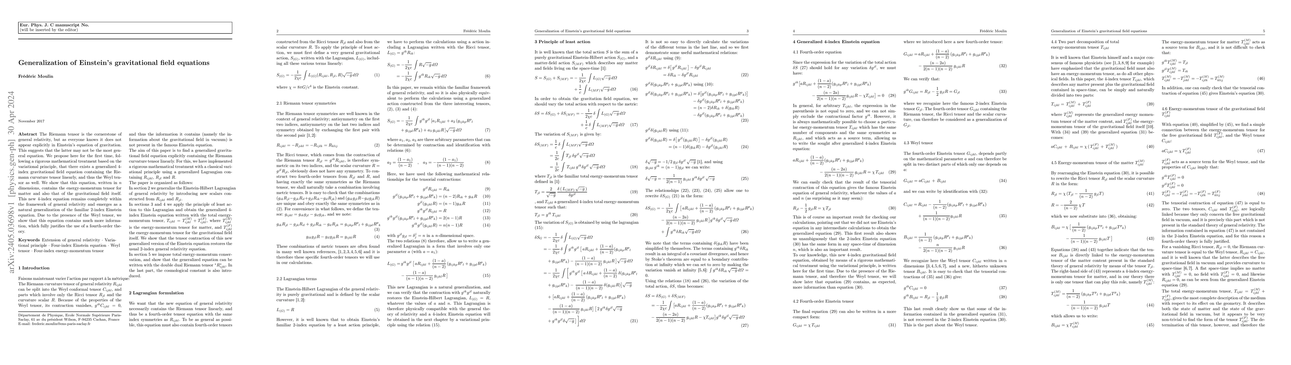 This paper proposes a generalized 4-index gravitational field equation that incorporates the Riemann and Weyl tensors, suggesting a more comprehensive framework than Einstein's original 2-index equation. This new theory, which remains within general relativity, provides additional information by including higher-order curvature terms.
