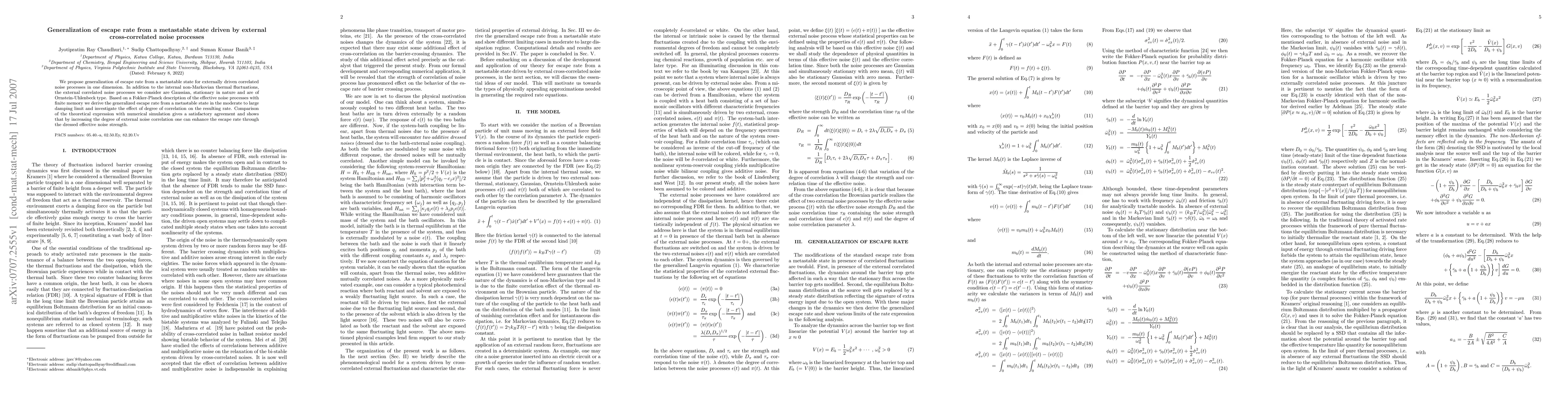 This paper generalizes the escape rate from a metastable state under the influence of external cross-correlated noise processes, specifically Gaussian, stationary Ornstein-Uhlenbeck-type noise. The authors derive a theoretical expression for the generalized escape rate using a Fokker-Planck approach and show that increased correlation enhances the escape rate through effective noise strength, validated by numerical simulations.
