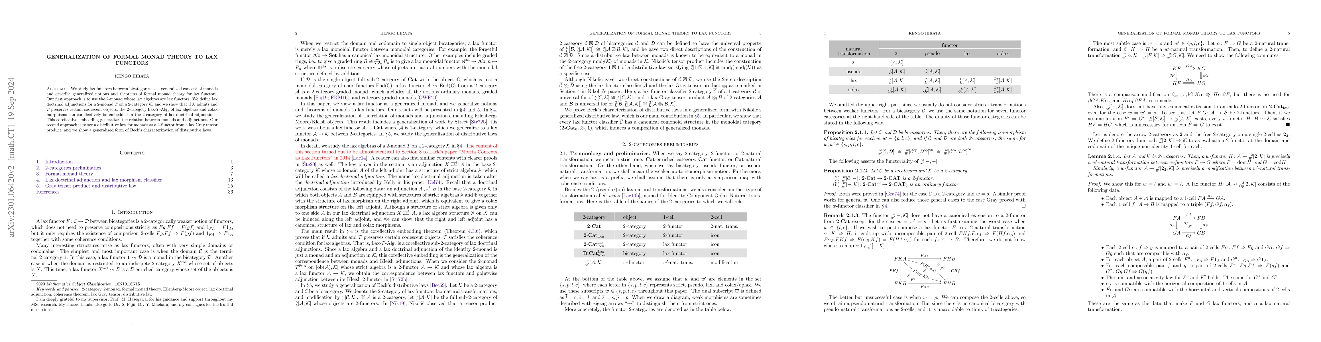 This paper generalizes formal monad theory to lax functors within bicategories, defining lax doctrinal adjunctions for 2-monads and showing their coreflective embedding in the category of lax doctrinal adjunctions. It also reinterprets distributive laws as 2-functors from lax Gray tensor products, extending Beck's characterization.