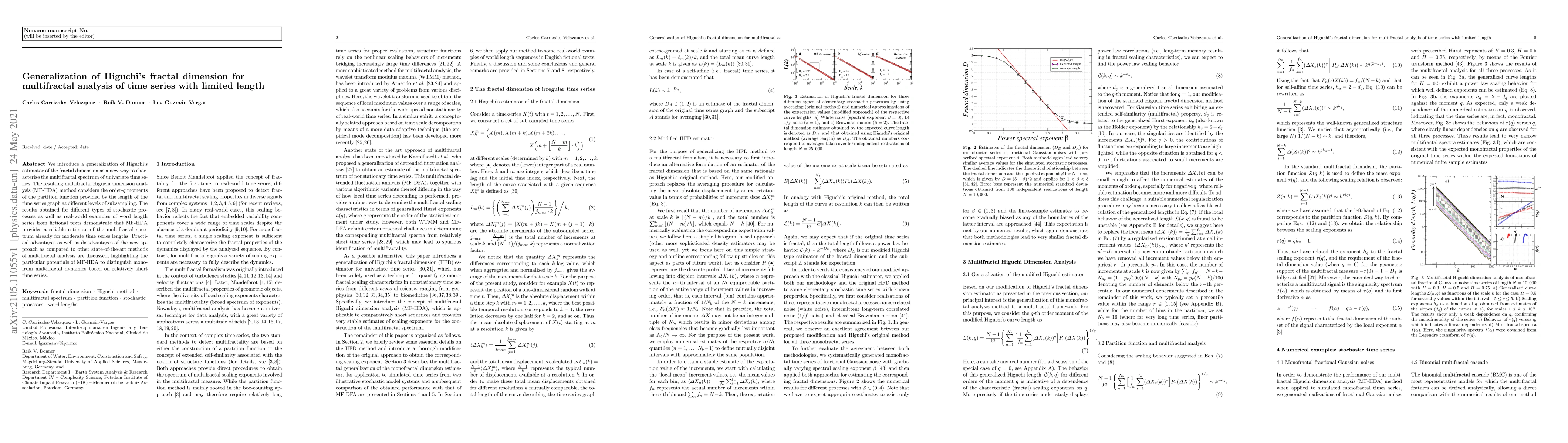 This paper proposes a generalized version of Higuchi's fractal dimension estimator to analyze the multifractal spectrum of short time series. The new method, termed multifractal Higuchi dimension analysis (MF-HDA), provides reliable estimates of the multifractal spectrum even for moderately sized time series, demonstrating potential to differentiate mono- from multi-fractal dynamics.