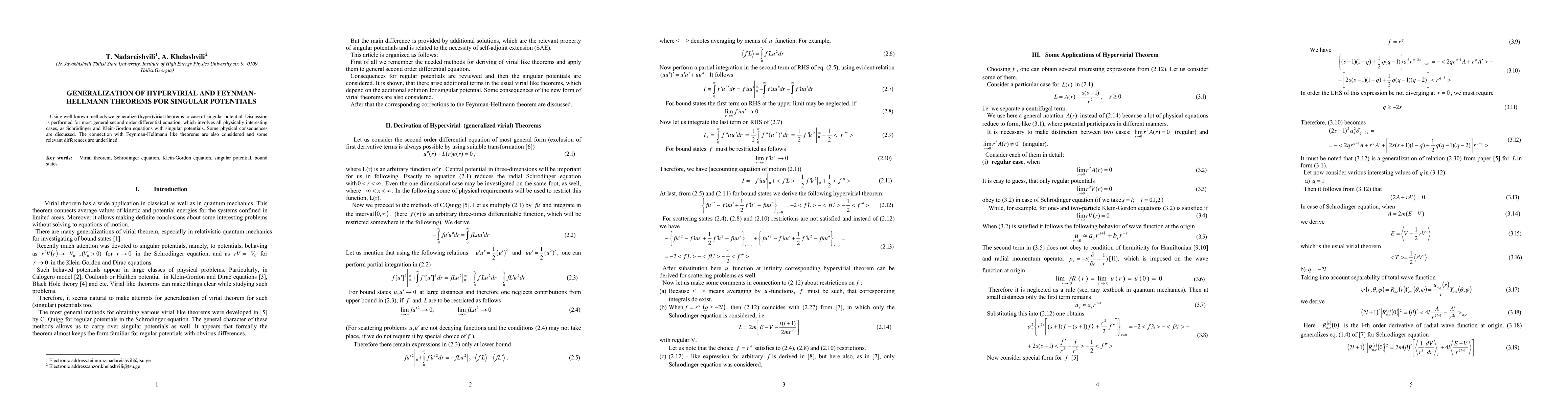 This paper generalizes hypervirial theorems to singular potentials and discusses their implications for Schrödinger and Klein-Gordon equations. It also explores connections with Feynman-Hellmann theorems, highlighting relevant differences and physical consequences.