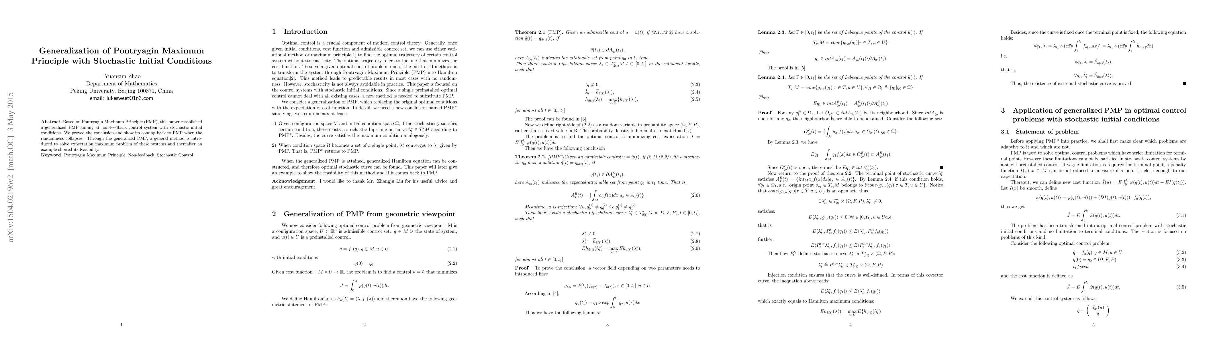 Based on Pontryagin Maximum Principle (PMP), this paper established a generalized PMP aiming at non-feedback control system with stochastic initial conditions. We proved the conclusion and show its coming back to PMP when the randomness collapses. Through the generalized PMP, a general method is introduced to solve expectation maximum problem of these systems and thereafter an example showed its feasibility.