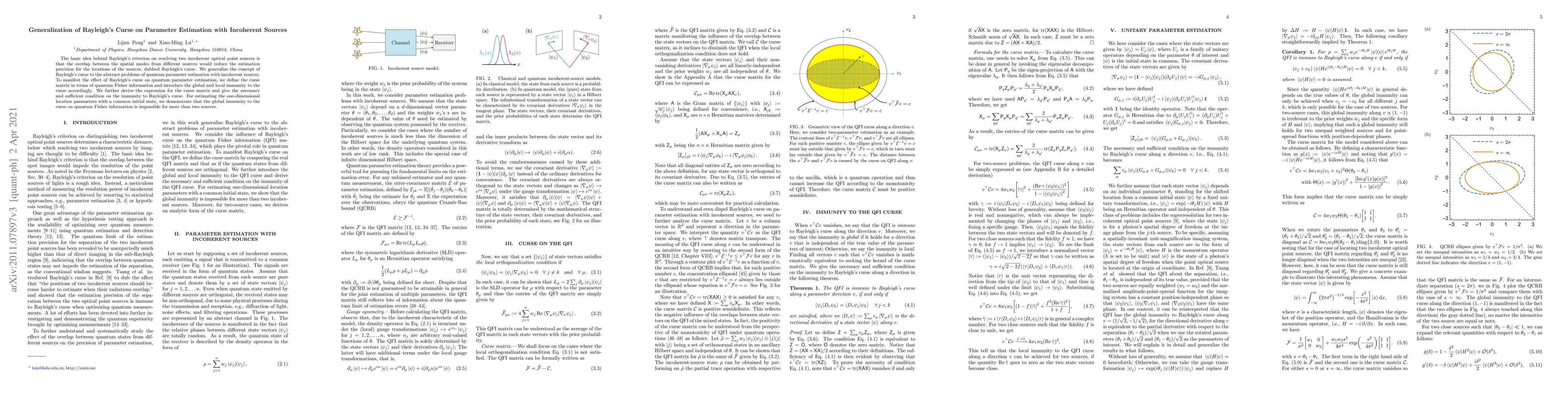 Research generalizes Rayleigh's criterion to quantum parameter estimation with incoherent sources, showing that immunity to the curse is impossible for more than two sources when estimating one-dimensional location parameters.