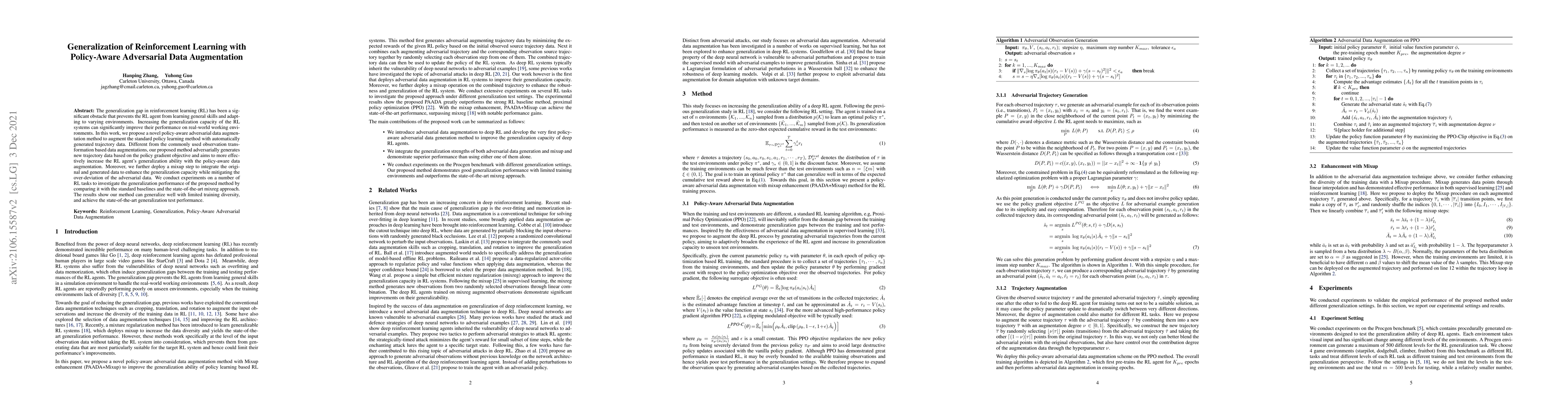 This paper proposes a policy-aware adversarial data augmentation method to enhance the generalization of reinforcement learning agents by generating new trajectory data based on the policy gradient objective. The method integrates mixup to balance original and augmented data, achieving state-of-the-art performance in generalization tests across various RL tasks.