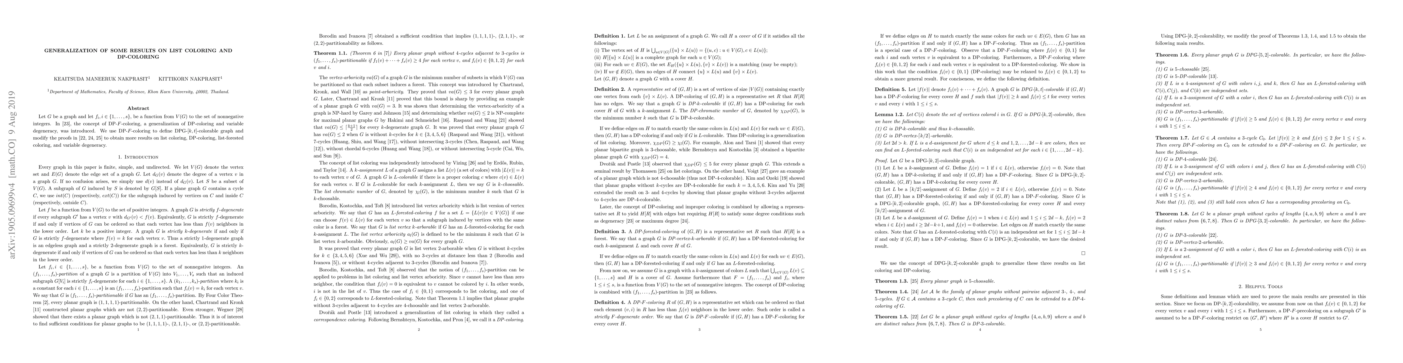 The paper introduces DPG-coloring by modifying proofs from previous works on DP-coloring and variable degeneracy.