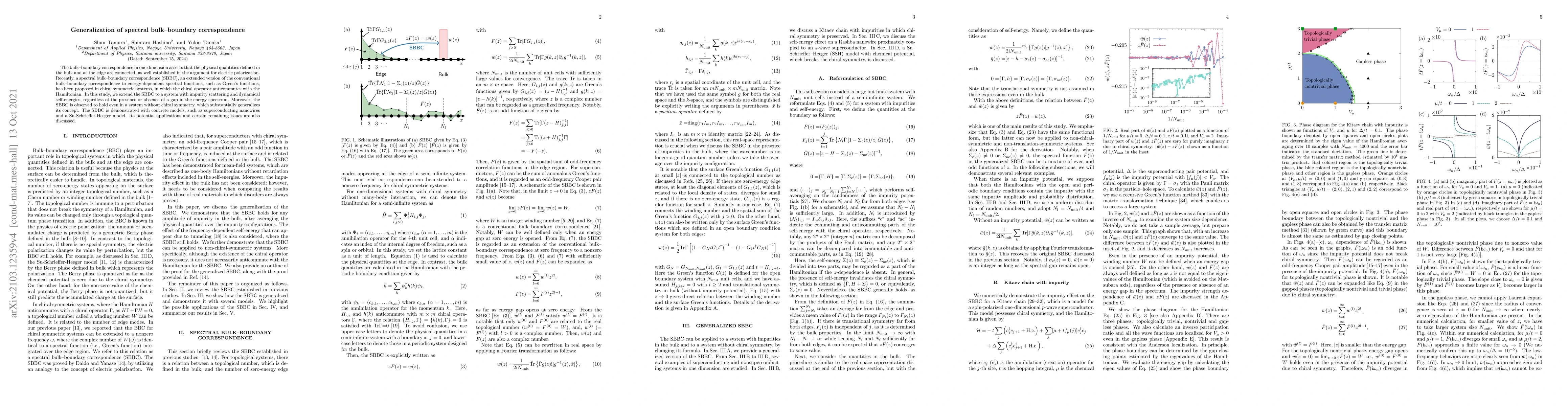 This paper extends the spectral bulk-boundary correspondence (SBBC) to systems with impurity scattering and dynamical self-energies, regardless of the presence or absence of a gap, and even in systems without chiral symmetry. The study demonstrates the SBBC with models like superconducting nanowires and the Su-Schrieffer-Heeger model, highlighting its potential applications and discussing remaining issues.
