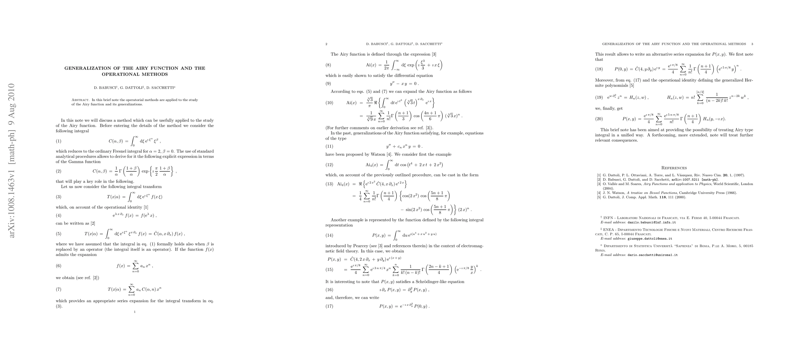 The research aims to generalize the Airy function's behavior and properties using these methods, with potential applications in various fields of mathematics and physics.