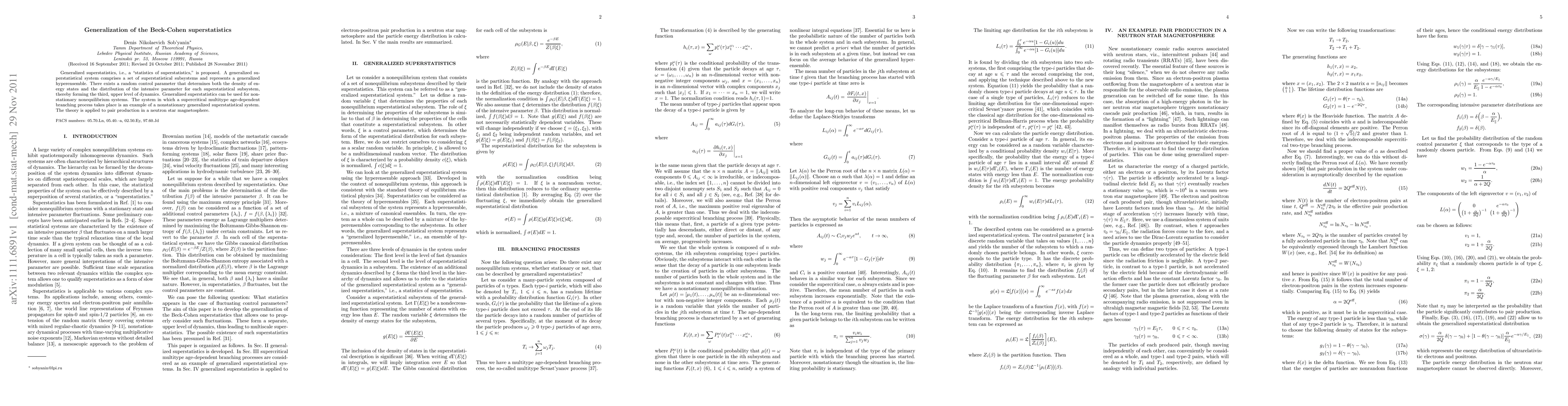 Generalized superstatistics, i.e., a "statistics of superstatistics," is proposed. A generalized superstatistical system comprises a set of superstatistical subsystems and represents a generalized hyperensemble. There exists a random control parameter that determines both the density of energy states and the distribution of the intensive parameter for each superstatistical subsystem, thereby forming the third, upper level of dynamics. Generalized superstatistics can be used for nonstationary nonequilibrium systems. The system in which a supercritical multitype age-dependent branching process takes place is an example of a nonstationary generalized superstatistical system. The theory is applied to pair production in a neutron star magnetosphere.