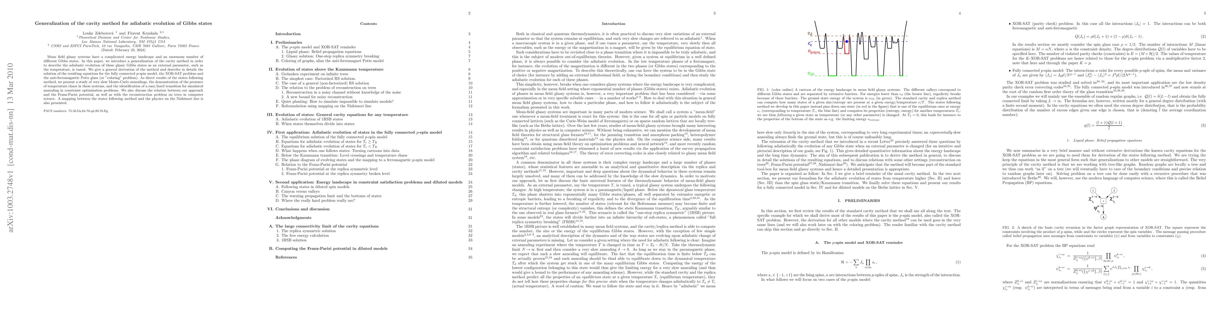 This paper generalizes the cavity method to describe the adiabatic evolution of complex Gibbs states in mean field glassy systems, providing detailed solutions for models like the p-spin model and XOR-SAT. It also explores temperature chaos, easy/hard transitions in simulated annealing, and connections to the Franz-Parisi potential and the reconstruction problem on trees.