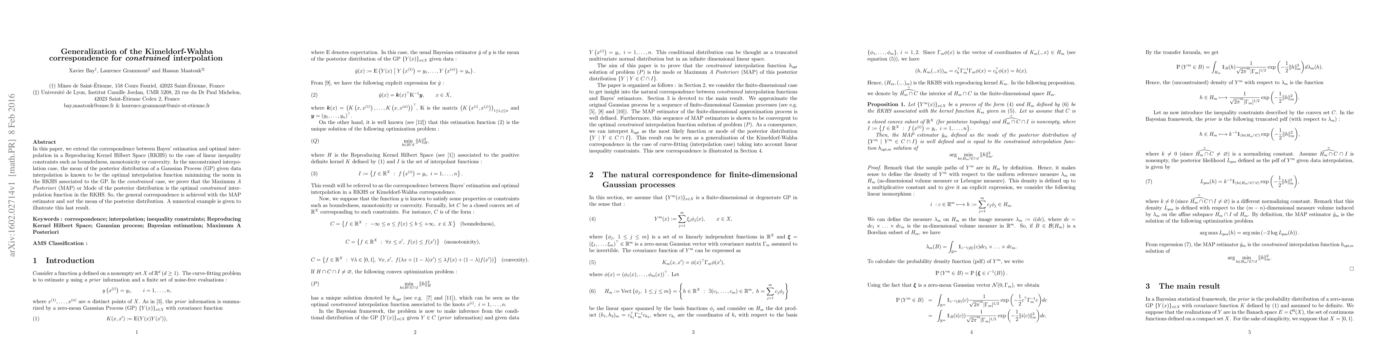 This paper extends the Kimeldorf-Wahba correspondence to linear inequality constraints, proving that the Maximum A Posteriori (MAP) estimator, rather than the posterior mean, is the optimal constrained interpolation function in the Reproducing Kernel Hilbert Space. A numerical example is provided to demonstrate this generalization.
