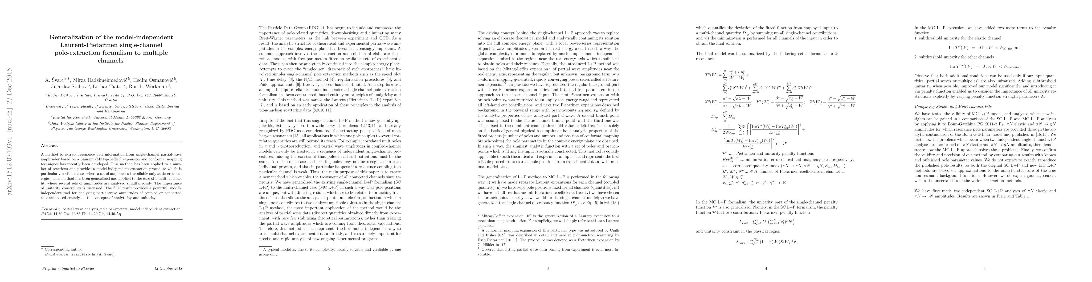 A method to extract resonance pole information from single-channel partial-wave amplitudes based on a Laurent (Mittag-Leffler) expansion and conformal mapping techniques has recently been developed. This method has been applied to a number of reactions and provides a model-independent extraction procedure which is particularly useful in cases where a set of amplitudes is available only at descrete energies. This method has been generalized and applied to the case of a multi-channel fit, where several sets of amplitudes are analysed simultaneously. The importance of unitarity constraints is discussed. The final result provides a powerful, model-independent tool for analyzing partial-wave amplitudes of coupled or connected channels based entirely on the concepts of analyticity and unitarity.