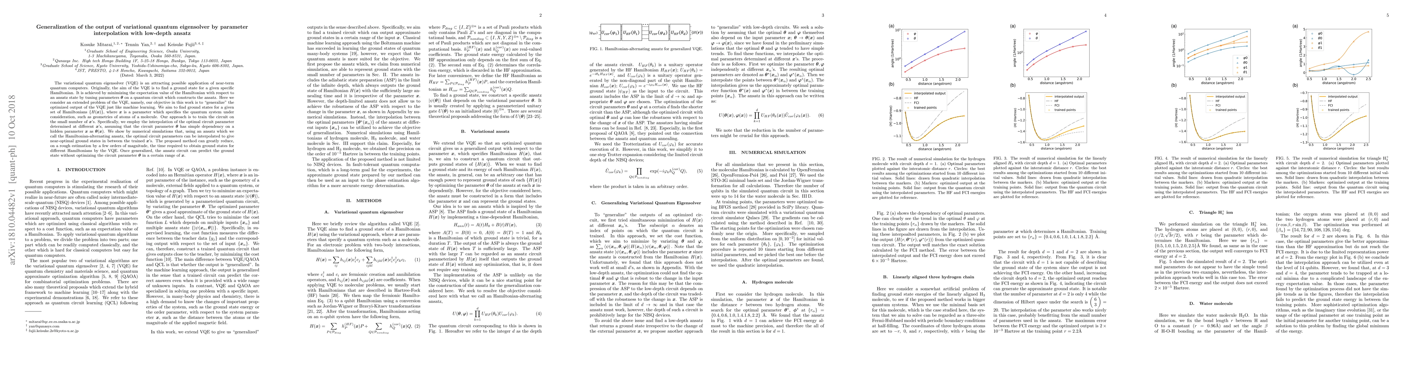 The variational quantum eigensolver (VQE) is an attracting possible application of near-term quantum computers. Originally, the aim of the VQE is to find a ground state for a given specific Hamiltonian. It is achieved by minimizing the expectation value of the Hamiltonian with respect to an ansatz state by tuning parameters \(\bm{\theta}\) on a quantum circuit which constructs the ansatz. Here we consider an extended problem of the VQE, namely, our objective in this work is to "generalize" the optimized output of the VQE just like machine learning. We aim to find ground states for a given set of Hamiltonians \(\{H(\bm{x})\}\), where \(\bm{x}\) is a parameter which specifies the quantum system under consideration, such as geometries of atoms of a molecule. Our approach is to train the circuit on the small number of \(\bm{x}\)'s. Specifically, we employ the interpolation of the optimal circuit parameter determined at different \(\bm{x}\)'s, assuming that the circuit parameter \(\bm{\theta}\) has simple dependency on a hidden parameter \(\bm{x}\) as \(\bm{\theta}(\bm{x})\). We show by numerical simulations that, using an ansatz which we call the Hamiltonian-alternating ansatz, the optimal circuit parameters can be interpolated to give near-optimal ground states in between the trained \(\bm{x}\)'s. The proposed method can greatly reduce, on a rough estimation by a few orders of magnitude, the time required to obtain ground states for different Hamiltonians by the VQE. Once generalized, the ansatz circuit can predict the ground state without optimizing the circuit parameter \(\bm{\theta}\) in a certain range of \(\bm{x}\).