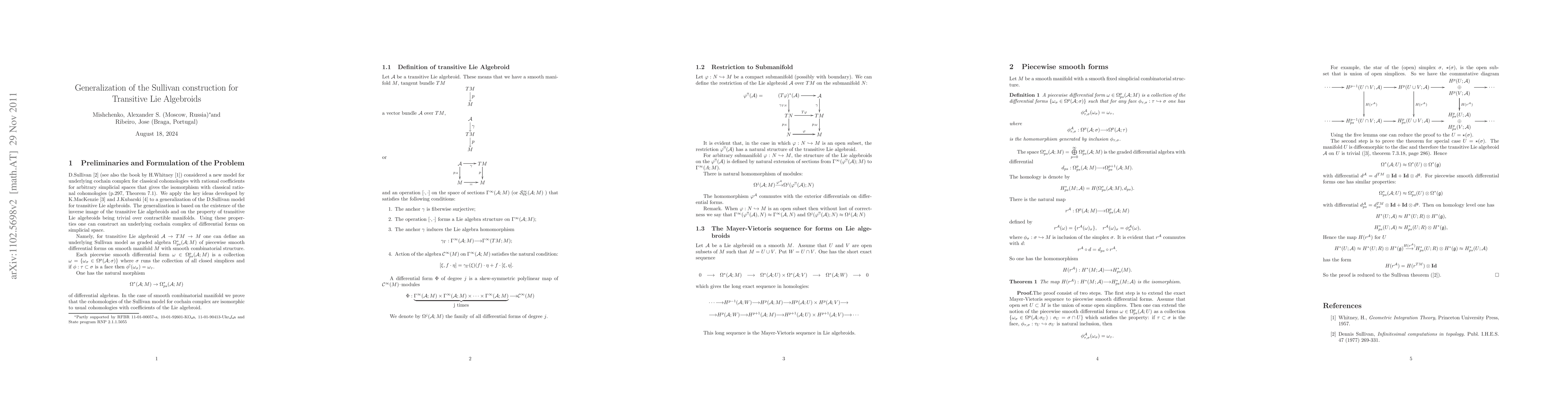 Summary: This paper generalizes D. Sullivan's model for simplicial spaces to transitive Lie algebroids, employing ideas from K. MacKenzie and J. Kubarski. It constructs a cochain complex for differential forms on simplicial spaces based on the inverse image and triviality properties of transitive Lie algebroids.