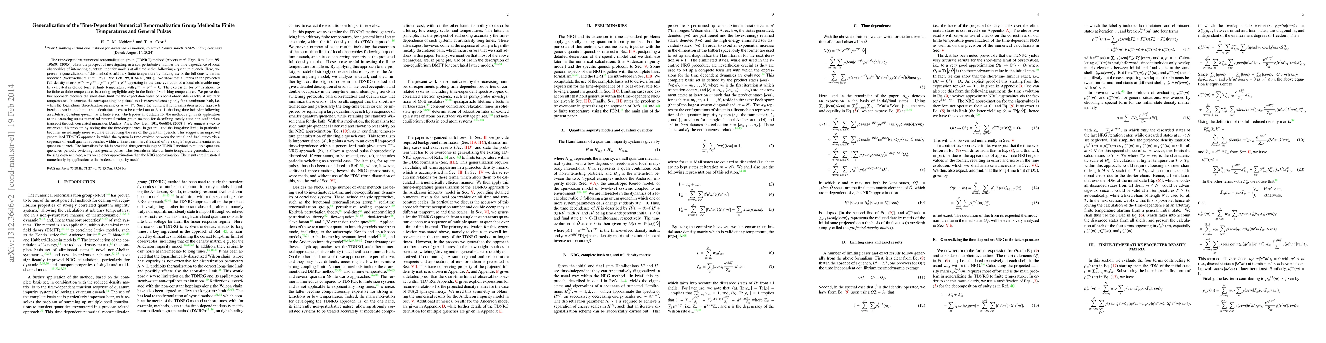 This paper generalizes the time-dependent numerical renormalization group (td-NRG) method to finite temperatures and arbitrary pulses, allowing non-perturbative investigation of local observables post-quantum quench. It provides a closed-form evaluation of the projected density matrix terms and suggests an improved approach via a sequence of small quantum quenches for better long-time limit accuracy.